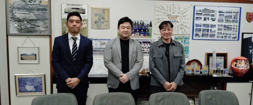 11月27日(木)、本校サッカー部OBの金本竜市氏が来校されました。現在準備を進めているサッカー場人工芝の全面張替に必要な資金調達活動にサッカー部OBも全面的に協力したいという旨の申し入れをいただきました。
